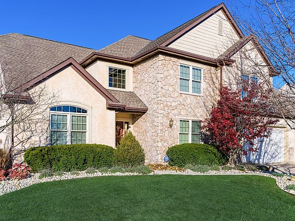 This 5-bedroom two-story home has it all - first floor primary suite, home office, vaulted great room, four full baths and two half baths, finished walkout basement with bar, workout room, and tons of storage! Situated on over .5 acres with plenty of areas to entertain - the raised deck, covered patio, paver patio with firepit and hot tub area, and abundant green space.