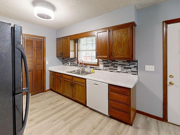 Move-in ready and freshly painted, this charming full-brick ranch offers comfort and convenience on a spacious 0.3-acre lot. The inviting covered front porch enhances curb appeal, while a handy garden shed provides extra storage for tools and equipment. Inside, you'll find three bedrooms, a generous living room, and an eat-in kitchen equipped with all appliances—including a smooth-top range, refrigerator with ice maker, dishwasher, and garbage disposal. A window over the kitchen sink offers a pleasant view of the backyard, complemented by a ceramic tile backsplash. The separate laundry/utility room adds functionality, and low-maintenance laminate flooring runs throughout the home. The attached finished garage features an insulated overhead door with opener, plus two service doors—one to the yard and one to the kitchen. Natural light fills the home, and ceiling fans with integrated lighting (some with remotes) are found in nearly every room. A brand-new roof will be installed prior to closing, making this home a solid, worry-free investment. Seller is providing a 2-10 Home Buyer's Warranty.