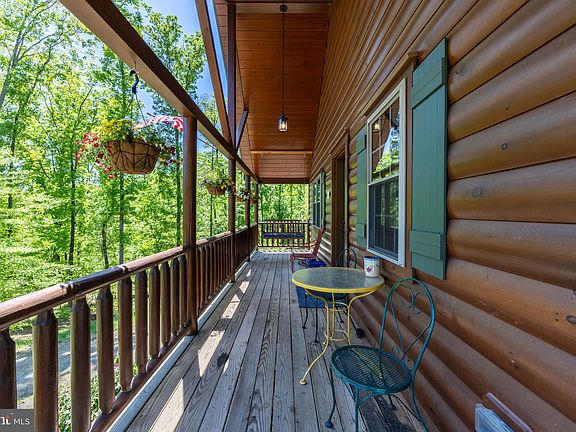 Escape to the peace and beauty of the countryside with this stunning 4 bedroom, 3 bathroom log home nestled on just over 35 acres of a perfect mix of woods and pasture land. This property combines rustic elegance with practical living, offering space, privacy, and a warm, inviting atmosphere. Inside, the open-concept kitchen, dining, and living area features vaulted ceilings. Rich hardwood floors, and wood-paneled walls are carried throughout the entire main level. Ideal for entertaining or cozy family nights, the layout flows seamlessly and is full of natural light. The primary bedroom has its own bathroom with a double vanity and a large walk in closet. There are 2 additional bedrooms on the main level as well as a full bathroom and large laundry room. The full, partially finished basement adds even more versatility, with the 4th bedroom, 3rd full bathroom, and a cozy wood-burning stove in the family room that brings warmth and character. Whether used as guest space, a private suite, or a family retreat, the lower level is ready to suit your needs. Enjoy outdoor living with a covered front porch and two spacious decks overlooking your expansive land. The fenced side yard provides convenience for pets, gardening, or outdoor activities. This property is perfect for a private homestead, hobby farm, or tranquil getaway. Run in shed and spring fed water trough already in place. There is endless potential on a truly breathtaking piece of land.