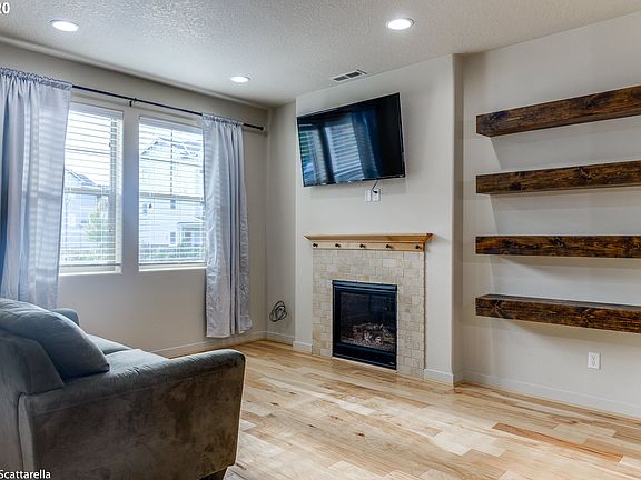 Sought-after corner lot, adjacent to park w/play structure, skate park, tennis & volleyball. HOA dues include pool access and front yard landscaping Laminate floors throughout main level. Living room w/gas fireplace. Open kitchen w/tile counters & backsplash, large island, pantry, & eat-at bar w/granite counters. Dining room w/slider to patio. Vaulted Master Suite w/ walk-in closet & bath w/dual sinks. 2 additional bedrooms on upper, large landing, & laundry. Fenced backyard w/patio. Central AC