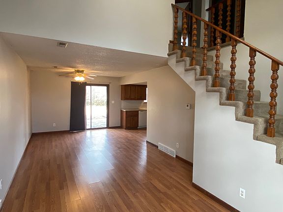 Great Location and Awesome layout in this 3 Bedroom/1.5 Bath Town house style duplex. Laminate flooring on main level and carpet upstairs in bedrooms. Tons of cabinet space, 1 car garage, vaulted ceiling, skylight in living room and much more. Call today to make this your home.