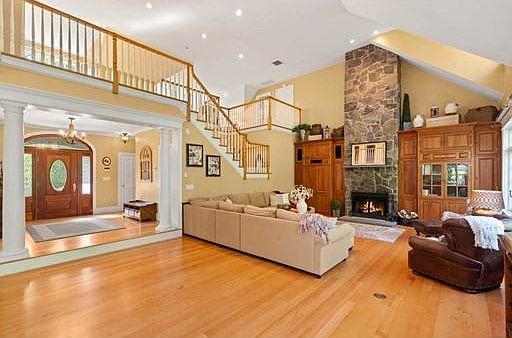 The perfect harmonization of beauty, tranquility & privacy presents itself to you in this magnificent estate-like property located only minutes to major routes with easy commuting to major hubs all while being a world away from the everyday buzz. As you find yourself beginning the ascent up the paver drive, you'll begin to take in the rolling, impeccably maintained grounds and enjoy the peaceful sound of nature that surrounds you. The expansive, open foyer will lead you to the impressive kitchen with sub-zero fridge & top of the line appliances. The awe-inspiring living room boasts a majestic floor to ceiling fireplace, vaulted ceilings and views of the second floor with it's perfect open & airy floor plan. You'll also find an office, heated sunroom, 1st floor master bedroom suite with luxurious bath, laundry, 1/2 bath & more on the main level. The graciously sized bedrooms on the 2nd level provide absolute comfort with two offering large en-suite baths giving you the option of a second-floor master bedroom. Wonderful sitting area/piano room with fantastic outdoor views & an adorable playroom/hideaway that will charm young hearts. The list continues as you make your way to the finished walk-out lower level with amazing 9-foot ceilings. Here youll find an Incredible game/bonus room with gorgeous French doors lead out to the side yard giving you easy access to the fenced in inviting inground heated pool & jacuzzi with full pool house & outdoor shower. Back inside is a marvelous media room where you can relax and enjoy your favorite movie. Plenty of storage, immaculate radiant heating system throughout, standby generator, irrigation, central vacuum & the amenities go on. This is the absolute perfect home for the most discerning of buyers. Truly must be viewed to see all that it has to offer.