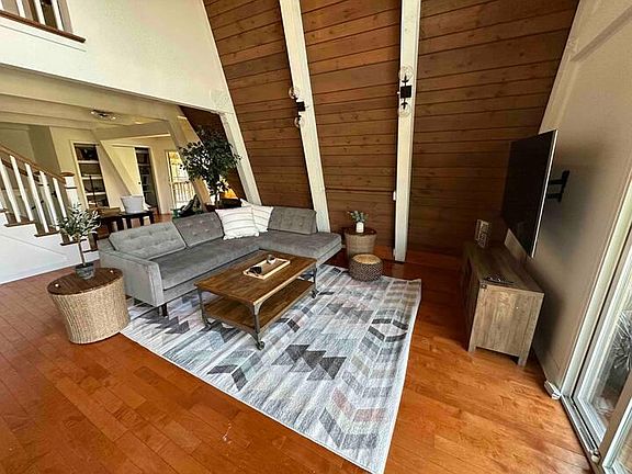 Welcome to our family's forest escape. This beautiful A-Frame home is nestled between trees and a pond, with the forest preserve behind it. You literally wake up to birds chirping and the local turkey crew doing their morning walks.