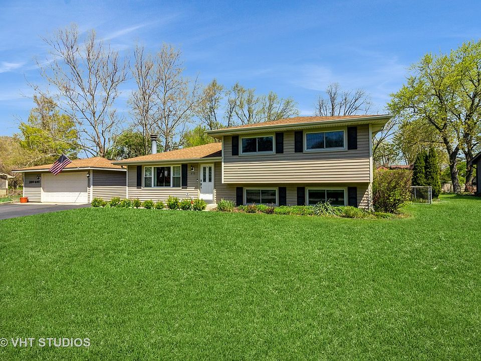 Welcome to this charming 3 bedroom, 2 bathroom single family home located in the highly desirable School District 200. Situated on a spacious lot with a large yard featuring a pool, this home is perfect for those who love outdoor entertaining. As you enter the home, you are greeted by beautiful new hardwood laminate flooring throughout, giving the home a warm and inviting feel. The main floor offers a cozy living room with a gorgeous stone wood burning fireplace with gas starter, perfect for relaxing on chilly evenings. The kitchen boasts plenty of counter space and cabinet storage, making meal prep a breeze. Upstairs, the master bedroom features a balcony overlooking the backyard, ideal for enjoying a morning cup of coffee. The additional bedrooms are perfect for a home office or guest rooms. Tons of storage options upstairs too. Step outside to the expansive deck, ideal for summer BBQs and al fresco dining. The fenced backyard includes a fire pit, perfect for roasting marshmallows on cool nights. The extra large 2 1/2 car garage provides ample storage space. With plywood walls, easy to organize all your tools and such. With a newer furnace, air conditioner, and hot water heater, this home is move-in ready. Located within walking distance to multiple parks, this home offers the perfect blend of indoor and outdoor living. Don't miss out on this fantastic opportunity to own a piece of Warrenville paradise.