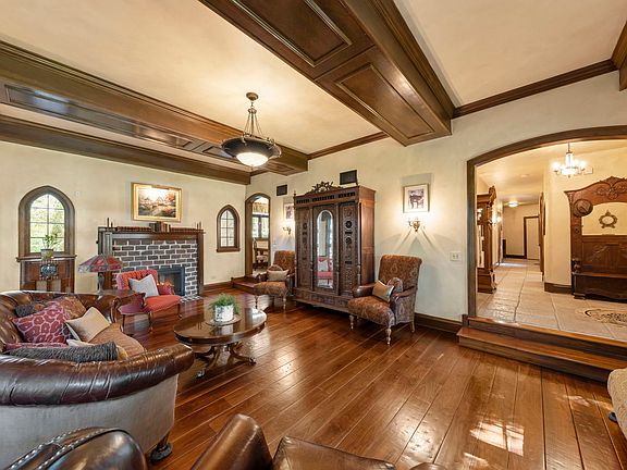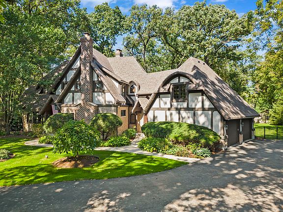 This breathtaking storybook home, known as Buck Thorn Cottage, sits on a private, professionally landscaped 1+ acre lot bursting with matures trees of many varieties - hickory, spruce, oak, walnut and shagbark to name a few. It boasts 4 beds, 3.5 baths and 3311 square feet plus a fully finished basement bringing the total finished square footage over 4800 square feet. The details are truly remarkable- distressed walnut floors, wood beams lining the 11 ft ceilings in the great room, limestone window sills, Italian tile floors, rounded solid wood doors (pegged construction, no screws). The kitchen is warm and inviting and features one of 4 fireplaces. The solarium is a true sanctuary where one can take in the gorgeous landscaped back yard. All 4 bedrooms are on the 2nd level including a massive primary suite and there's also a main level office/sitting room. The basement has tall ceilings and includes a full wet bar perfect for entertaining. Updates include, but aren't limited to: new well pump, tank, and sensor (2023), 2 hot water heaters (2023), water softener with iron filter (2022), garage door sensors (2022), GE double ovens (2021), whole house generator (2021), roof (2020), new shed (2019), sewer line to septic (2018), refrigerator (2018), 2 furnaces (2013), 1 A/C (2013). Don't miss out - set up a showing today!