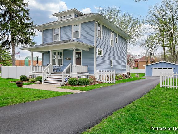 This updated home seamlessly blends modern elegance and amenities with historical charm and detail. All the work is done here. Completely rehabbed with updated electrical, plumbing, windows and roof. Recent updates include: New HVAC (2020), new ejector pump (2020), exterior freshly painted (2019), new driveway (2018). Once you step into this clean and well-maintained home you are greeted with beautiful hardwood floors, 9' ceilings and 7" baseboards. Enjoy the spacious updated kitchen with all stainless steel appliances, including a 5 burner gas stove, beautiful granite counters with subway tile backslash, apron farmhouse sink and maple cabinets. The large island completes the chef's dream space. On the second floor you will find the master suite with walk-in closet and spa bath. In addition there are 2 bedrooms and updated hall bath. Be sure and take note of the original built-in cabinet for extra storage. The walk-out basement completes the home with a family room, office space and 4th bedroom. This home features a 4-car garage with its own electrical panel and cable. The 3-car bay includes a huge workshop and plenty of storage space for any car enthusiast. Special bonus is the 4th bay that is heated and has a separate entrance perfect that precious car or home gym. This home is situated on over 1/2 acre lot with beautiful garden beds, brick paver patio, deck and is fenced. Located within walking distance to downtown Warrenville and across from Blackwell Forest preserve! School District 200, Wheaton Warrenville High School.
