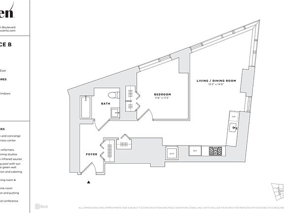 FARE Act Disclosure. This listing is intended to be used by prospective renters and may not be republished without the prior written consent of The Durst Organization. Absent an express written agreement or acknowledgment to the contrary, The Durst Organization and its affiliates (1) do not utilize the services of third-party brokers or agents in connection with the rental of residential apartments and (2) will not assume responsibility for any brokerage fees incurred by a prospective renter. The Durst Organization and its affiliates will not charge or collect fees from a prospective renter except for such fees as permitted by law and disclosed to the prospective renter.