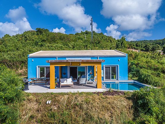 Gorgeous newly constructed 2-bedroom, 2-bathroom solar powered home on 2.45 acres in the picturesque west end of St. Croix, where modern design meets eco-conscious living. Situated near Butler Bay, this property offers breathtaking views, innovative features, and a seamless blend of luxury and sustainability, making it the perfect retreat, amazing investment or primary residence. Every detail of this home has been designed with comfort and style in mind. The open-concept layout creates a bright and inviting atmosphere of natural light with expansive windows framing stunning views of the Caribbean Sea and lush tropical surroundings. The living area flows effortlessly into the kitchen and dining space, perfect for relaxing after a day of island exploration. This home is a showcase of sustainable living, featuring a solar-powered fresh-water pool with an oxygen pump system. The pool is strategically positioned to offer uninterrupted views of the Carribbean Sea, providing the perfect backdrop for a morning swim or evening relaxation under the stars. The patio is a great space for entertaining, grilling and complete outdoor living.