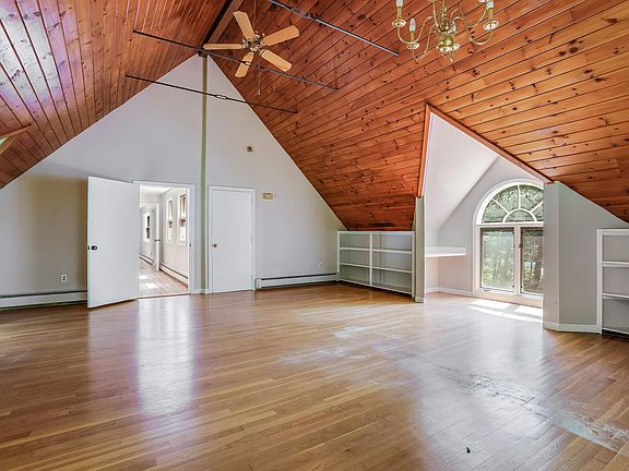 Welcome to this unique contemporary Gambrel/Cape nestled on a private lot in Auburn, where the convenience of a prime location meets the tranquility of peaceful seclusion. The bright kitchen flows seamlessly into a sunlit living room, complete with a cozy wood stove that’s perfect for relaxing evenings at home. On the first floor, you’ll find a spacious bedroom and a full bath, along with a flexible room that’s ideal for a home office or den. An incredible great room awaits, boasting vaulted wood ceilings, dramatic windows, and custom built-in shelving to showcase your favorite treasures. Upstairs, discover the primary suite with four generous closets and a full bathroom. An additional versatile room can serve as an extra bedroom or great room with its own wood stove for those chilly nights. Car enthusiasts and hobbyists will appreciate the expansive garages, providing space for at least 3 vehicles. Step out onto the large deck and enjoy views of a serene, tree-filled backyard—an ideal spot for gatherings or quiet mornings with coffee. This home is situated in a desirable neighborhood, just moments from highways for easy commuting. This contemporary Cape blends comfort, flexibility, and privacy—ready for you to make it your own.