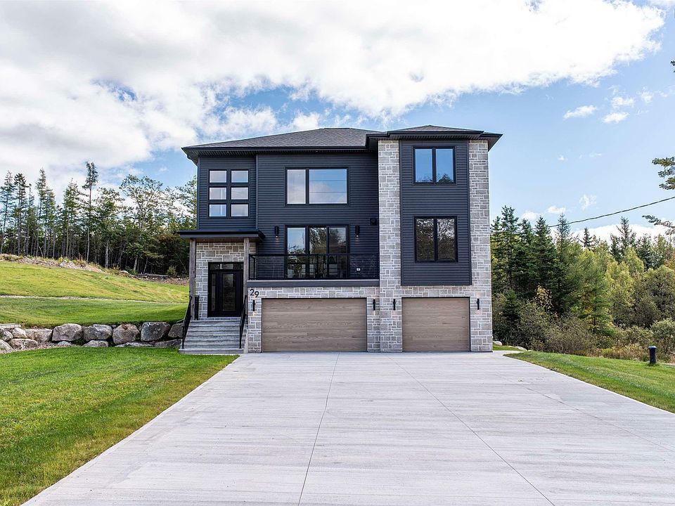 Stunning executive new construction home on 1.2 acre fully landscaped lot! This modern design home boasts over 3,800 sqft of living space with numerous highlights and upgrades throughout. The open concept main level features an eat-in kitchen that is truly a chefs dream with its oversized quartz island and modern cabinetry that provides expansive storage alongside a thoughtfully designed great room that features a cozy stone fireplace and a three pane 8ft tall patio door that leads to the front deck. Upstairs you will find three large bedrooms and two full baths. The expansive primary bedroom provides a luxurious escape with a spa-like ensuite featuring a relaxing soaker tub, custom tile shower and double vanity. The lower level of this home features a large rec room that is perfect for a family movie night or to watch the big game. Another full bath and bedroom finish off this level. This property is a must see!