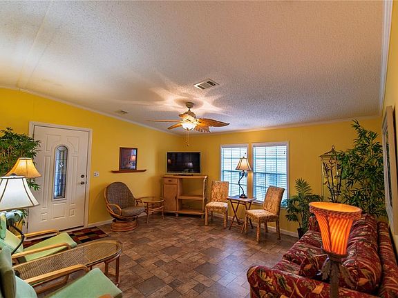 Discover your ideal retreat in the vibrant 55+ community of Windmill Village with this charming 2-bedroom, 2-bathroom Fleetwood model home, spanning 1,350 square feet. Embrace the open concept layout featuring elegant crown molding and drywall throughout, complemented by a spacious kitchen boasting ample storage, a convenient breakfast bar, and a cozy dinette area perfect for morning coffee. Offered turn-key furnished with just a few exceptions, this residence includes an inviting entry foyer with built-in storage, a generous primary bedroom with dual closets for all your wardrobe needs, and a versatile second bedroom equipped with a Murphy bed for guests. A bonus room, passively cooled under air, adds extra flexibility for your lifestyle. Bathed in natural light through numerous windows, the home feels bright and airy, with hurricane shutters for added peace of mind. Access the home via a unique dual staircase, and enjoy exterior enhancements like stunning stonework encircling the entire house, mature landscaping that adds curb appeal, and plenty of outdoor storage for your hobbies and tools. A spacious carport (11.5 H x 14.5 W x 70 L) and driveway enhance functionality. The low HOA fee of $261.00 per month covers water, sewer, trash, grass maintenance, common area upkeep, and road maintenance for a hassle-free lifestyle. Windmill Village offers an active lifestyle with two private marinas, a boat ramp, trailer storage yard, horseshoe pits, shuffleboard, bocce ball, billiards, indoor pickleball, a large community center, and many clubs catering to your hobby interests. The pavilion by the heated pool is perfect for gatherings. Located in Punta Gorda, voted “#1 Best Small Place to Live” by Money Magazine and Forbes, the purchase price excludes a refundable $18,285 Buy-In Share and Bond. Don’t miss the opportunity to make this beautifully maintained paradise yours—schedule your showing today!