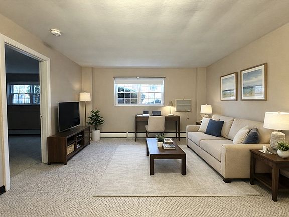 Updated one-bedroom at Ambassador Manor, featuring a modern kitchen, ct bath, wall-to-wall carpet. common outdoor pool, assigned parking for one car included. Close distance to Woburn Center shops and dining, scenic Horn Pond recreation, major highways, and public transit for easy access to Boston.