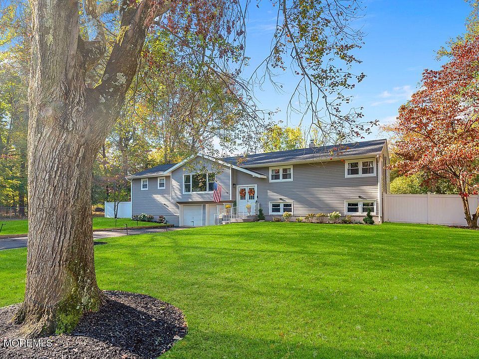 Gorgeous updated custom home on large lot w/ newer in-ground pool - home was completely redone in 2023 - beautiful white kitchen w/ quartz counters, huge center island, tiled backspash, microwave drawer, s/s appliances, french door leads to country club type back yard w/ newer in-ground pool w/ light and custom patios, hardwood flooring, 2 door entry, masterbedroom features private full bath, huge fenced in level lot, lower level features family room, office, den/bedroom, bathroom, laundry room, huge basement type area and 2 car oversized garage, loads of off street parking, located in most desireable Marlboro twp in a great cuommuter type location with quick access to GSP and all rtes and highways - great deal on a fully renovated home