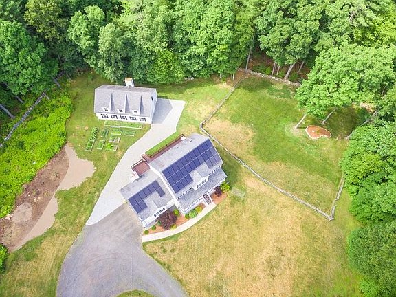 Country living at its best. With almost 5 acres, of quiet private land. Enter from the front farmers porch into the foyer where a gourmet granite eat-in kitchen with stainless steel appliances welcomes you home. Open to the formal dining room with french doors, family room, and an expansive fire placed walk-up living room with cathedral ceilings and sliders to the large multi-level deck. Second floor has three generous bedrooms, and two immaculate luxurious full baths. The walk up attic could easily be transformed into more living area. Full unfinished basement walks out to the two car garage. Large detached barn / garage with water and electricity. Large paddock area and barn with room for over four horses. Truly an oasis. Every season look out your windows to a dream world. Fruit trees and berry bushes. Solar features and rewards. Minimize your carbon footprint to near zero.