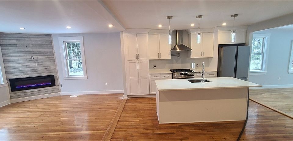 Meticulously renovated single-family home, located in a highly sought-after neighborhood, on the Holbrook/Braintree line. Property consists of 1300sqft+/- situated over 2 levels, of which has a modern open living, kit, din layout. NEW Kitchen consists of white, cust cabinetry, NEW counters, NEW appl, NEW custom lighting, NEW ss hood vent with a pot filler. Main level consists of a primary bed w/ large, dble closets, a primary bathroom with dble custom pocket doors, fully tiled walk-in shower, 60" double, floating vanity, a touch screen 48" anti-fog, multicolored, LED mirror. TV/USB outlets. 2nd level consists of 2 large/priv beds with walk-in closets in each, LED lighting, TV/USB outlets, custom tiled bathroom with a deep soaker tub, TV/USB outlets in all beds&baths. BRAND NEW: Full electrical wiring throughout, 200AMP service; HVAC-heating/ac; New plumbing throughout; New tankless WH; Newly framed rear addition w expansion possibilities above. Located on the Braintree line,