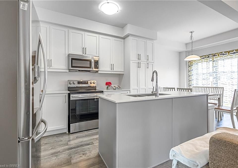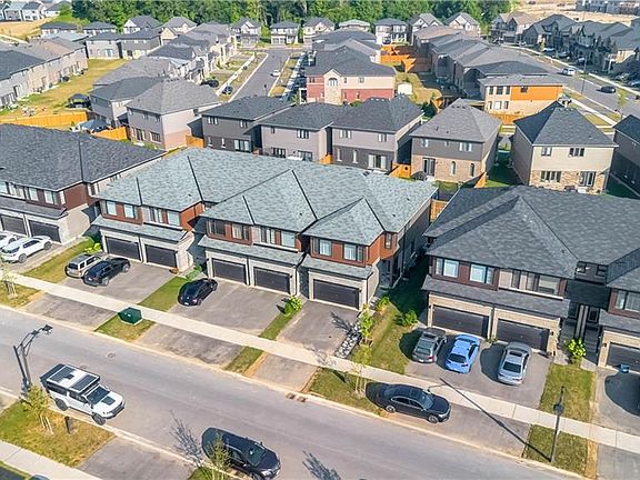 This exquisite 3-year-old Losani-built semi-detached townhome epitomizes modern elegance in the sought-after West Brantford community. Offering 3 bedrooms, 3 bathrooms, and a collection of premium builder upgrades, this home blends refined style with everyday comfort. The chef-inspired kitchen showcases quartz countertops, custom cabinetry, and designer finishes, flowing seamlessly into a bright, open-concept living and dining area—perfect for entertaining or relaxing in style. Upstairs, a rare media loft (soft loft) provides versatile living space—ideal as a family lounge, home office, or creative retreat. The luxurious primary suite impresses with a walk-in closet, a spa-inspired ensuite featuring an upgraded glass shower wall, and a timeless, contemporary aesthetic. The finished basement extends your living space and includes rough-ins for a future fourth bathroom, offering flexibility for your lifestyle. With a private driveway, 1.5-car garage, and meticulous attention to detail throughout, this residence stands out as a true gem in the neighbourhood—where elegance meets functionality in perfect harmony.