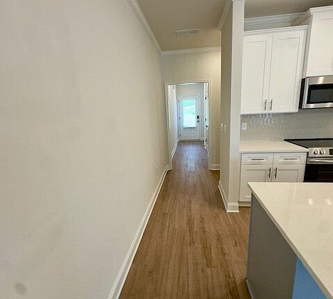 Modern hardware and fixturesStylish counter topsSpacious islandStainless steel appliancesModern kitchenWalk-in closetSoft-close cabinets and drawers