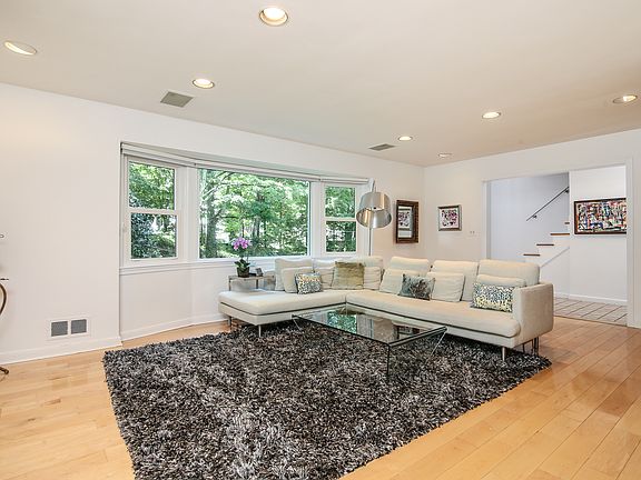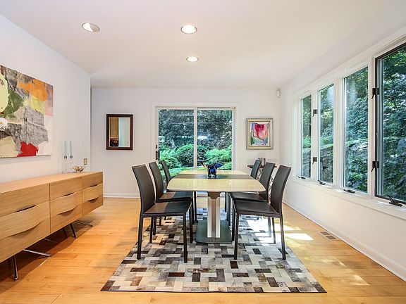 Chic and pristine contemporary colonial privately nestled next to the Leatherstocking Trail at the end of a quiet cul-de-sac has a relaxed and flexible floor plan, light-filled rooms and picturesque views which capture the idyllic setting. The living room, dining room and family room on the first floor each offers clean lines and incorporates beautiful outdoor views. The sleek kitchen opens to a large deck overlooking the lush surroundings. There are three large bedrooms on the first floor, including one with an en suite bath. Upstairs is a sumptuous master bedroom suite with spa-like bath, an expansive walk-in custom closet with built-ins and a fabulous family room with wood-burning stove. This turn-key home is in a tree-lined neighborhood, and a sidewalk planned for 2019 will soon provide a path to Murray Avenue School, the Larchmont Village and the train station.