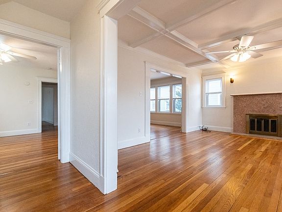 Freshly painted and well lit first floor unit with hardwood floors throughout. Six rooms, two bedrooms, eat in kitchen with stainless appliances, updated cabinets and pantry.Granite countertops, full size dining room, full size living room and sun room. The back porch is enclosed and leads to a beautiful back yard common area with patio and fruit trees. Parking for two cars and space for additional parking across the street. Basement area for storage and washer / dryer hookups. ( landlord can provide washer /dryer if needed. A/C splits to be installed as well. Area amenities include, shops, parks, public transportation and highway access. Hospitals and other in close proximity.