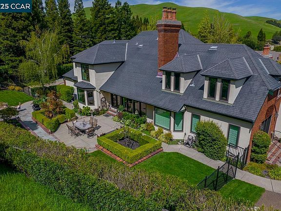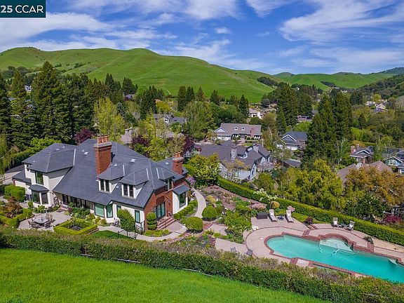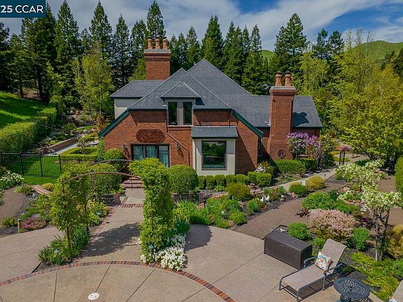 One of Moraga’s premier estates, this 4,791± sq. ft. Branagh-built residence blends timeless architectural charm with luxurious modern updates. Privately set on a .67-acre lot surrounded by lush landscaping, mature trees, and rolling hills, the home offers unmatched privacy while remaining close to top-rated schools, parks, and community amenities. Inside, a thoughtfully designed floor plan features four spacious bedrooms plus a den and 4.5 bathrooms. The grand entry leads to sunlit living spaces with soaring ceilings, custom millwork, and oversized windows framing serene garden views. Multiple gathering areas — from the elegant formal living room to the inviting family room — create a seamless flow for entertaining and everyday living. The gourmet kitchen boasts high-end appliances, expansive countertops, and ample storage, w/ a breakfast nook & formal dining room ideal for hosting. The luxurious primary suite offers spa-like amenities, tranquil views, and direct access to landscaped grounds. Outside, resort-style living awaits with a sparkling pool and spa, stone patios, curated gardens, and secluded seating areas — all set against sweeping views of Moraga’s hillsides. Located in gated Sanders Ranch, this estate perfectly balances natural beauty, privacy, and lifestyle.
