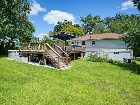 Unique offering.....great for multi-generational family as this home is presently being used a single family with in-law. Sited in a neighborhood with expansive deck complete with above ground pool and overlooking a well landscaped lot with shed. The upper level offers striking newly updated kitchen opening to fireplaced living room which is dominated by large bow window. This level has hardwood floors, 3 bedrooms sharing bath and walk out to large deck, The sunny first floor level has cozy living room open to the large U-shaped kitchen. It features a large bedroom with fireplace, a cozy 2nd bedroom with built-ins and large bath with jacuzzi and shower. The pastoral setting with grassy lawn, perennials, and fruit tree. Easy for commuting with Mass Pike minutes away.