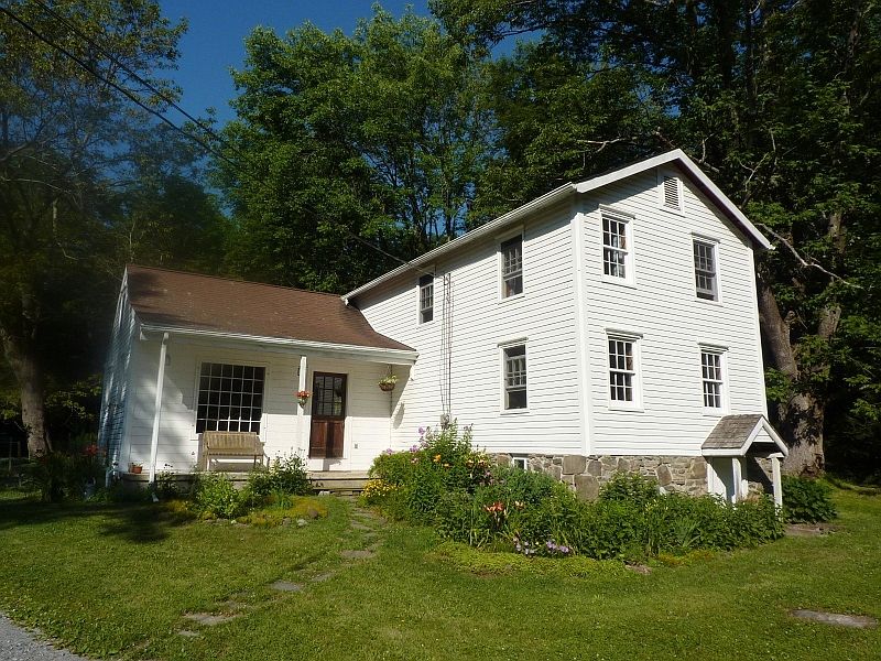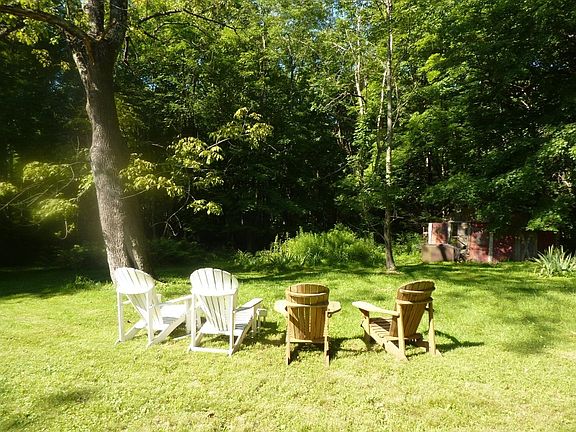 Charming 3 BR farmhouse-style Colonial;picturesque 2.25 acres bordering babbling brook;HUGE STUDIO w/gleaming HW flrs;ideal office/ studio;spacious EIK;newer furnace;AG oil tank;new septic to be instd Ample living space in neutrally-decorated living room and dining room; two-story studio features 27 x 20 great room w/hardwood floors; second story loft; and propane gas heat. Enjoy the serene woodland setting, nicely-landscaped perennial garden, and the distant murmur of the bordering stream. Close to nature, yet just minutes from convenient Rt. 23 commuter route, schools, shopping! New septic to be installed