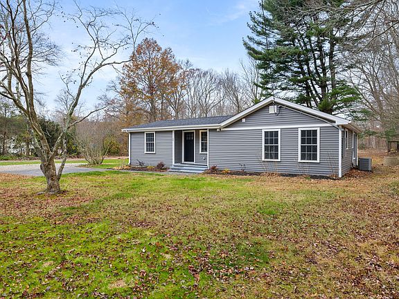 Welcome to 29 Brush Hill Rd, a fully remodeled 3-bedroom, 1-bath ranch set on a peaceful, level lot in Clinton. This 1,077 sq ft home has been transformed inside and out with a new roof, siding, windows, septic system, mechanicals, flooring, and fresh modern finishes throughout. An open-concept layout fills the home with natural light, flowing from the living room to the dining area and into a stunning new kitchen featuring white shaker cabinets, granite countertops, stainless steel appliances, brass accents, and a large center island. Sliding doors lead to a new patio overlooking the private backyard, creating an easy connection between indoor and outdoor living. All three bedrooms offer bright, comfortable spaces with new flooring, trim, and doors. The beautifully updated bathroom includes a double-sink granite vanity and a clean, modern tub and shower surround. Set back on a quiet road and bordered by trees, the property feels private while still close to Clinton's beaches, marinas, shopping, and commuter routes. With every major system replaced and every surface refreshed, this turnkey home is completely move-in ready and perfect for buyers seeking quality, comfort, and effortless one-level living.