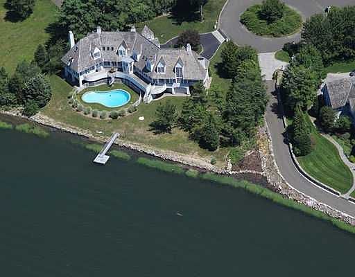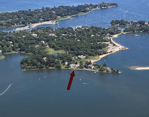Water front with private beach, 5 en-suite bedrooms, 4 fireplaces, wine cellar, 4 car garage, amazing water views from every window. Open floor plan with gourmet kitchen open to family room. Master bedroom on first floor. Heated pool, floating dock. Walk to newly redone Weed Beach with tennis and paddle courts, lifeguards, snack bar, etc. Everyday is a vacation. Must see!