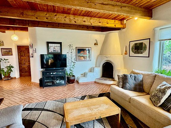 Meticulously constructed with the collaboration of local builders and artisans with the highest standards of craftsmanship and design, this stunning adobe residence is an absolute marvel. Built around an original 1900’s adobe structure, the 4 BR / 4 BA main house has 4,200+ sqft of living space. Elegant, cozy living-room has Count Rumford high-efficiency fireplace. Tasteful kitchen has quartz counters, commercial-style 6-burner stove, & stained glass clerestory windows. A spiral staircase winds upward from an expansive library to an elevated office space with views. Vigas lead you from room to room as you are greeted by exquisite finishes and hand-carved wooden doors from Mexico with 18th-century hardware. Outside has covered deck, enclosed bricked courtyards for entertainment, well-constructed barn/workshop, RV space, and horse barn/corral with welded pipe fencing. Proximity to trails allows you to ride your horses all the way to the Gila NF.