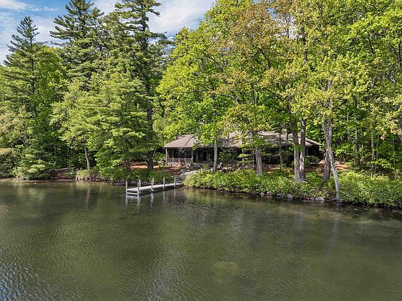 Tucked away on the shores of Rust Pond sits an extraordinary waterfront home on 2.63 acres with 210 feet of pristine shoreline with southwestern exposure for all-day sun and sunsets. The water is crystal clear, spring-fed and your private beach and dock make it easy to kayak, paddle board, sail or motor boat. You can fish for bass or pickerel right from your dock, or drift across the lake in a canoe as loons call in the distance. The home itself blends traditional charm with upscale comfort. With 3 bedrooms and 3 bathrooms, it features an impressive foyer, exposed wood beams, two stone fireplaces, a built-in bar, and a floor plan that keeps the lake in view from nearly every room. There is a "Great Room", a large family room/study and a primary bedroom suite that is separate from the guest wing. The chef’s kitchen has granite counters with a large island plus an adjoining laundry, pantry and mudroom. A screened porch, wraparound deck, stone patio with fire pit, and level lakeside grounds create outdoor living spaces as inviting as the interior. An oversized 2 car garage and full basement provide room for vehicles, equipment and water toys alike. Whether you're hosting summer get-togethers, enjoying a peaceful winter retreat, or creating memories with family, this home adapts to every season and stage of life. Located just minutes from downtown Wolfeboro with its boutique shops and restaurants, this lovingly maintained property checks off all the boxes and is sure to impress!