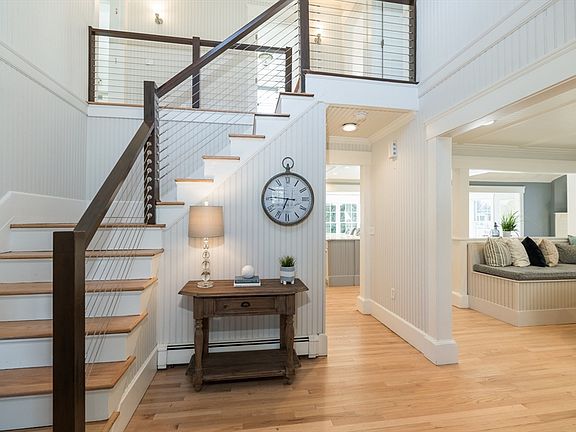 This sunlit Colonial caters to beach enthusiasts seeking space and luxury. Built in 2000 the home offers numerous chic, yet casual, coastal updates as well as the opportunity to add your personal flair. An open concept floorplan seamlessly connects kitchen, living and dining and is highlighted by vaulted ceilings, granite, hard wood floors and a gas fireplace. The first-floor primary bedroom is an oasis featuring wood-burning fireplace, marble bath and walk-in closet. The second floor offers ample space with four bedrooms and two full baths. Just a few minutes away is private Coffins beach, a 1.5-mile sandy stretch of coastline known for its privacy and seclusion. The waters are clear and inviting, perfect for swimming and wading. The beach boasts soft sands where you can sunbathe and build sandcastles. Return sun-kissed and salty to be welcomed by your home’s backyard, an outdoor haven with bluestone patio and fire pit, the perfect spot to gather.