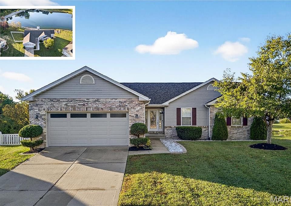 Nestled on the back end of a cul-de-sac in The Lakes of Elmwood sits this AFFORDABLE and meticulously maintained ranch offering 4 bedrooms, 3 full baths, and an attached 2-car garage, perfectly positioned on an expansive .86 acre lot that backs to peaceful water views. Step inside to an inviting open-concept layout w/ Pergo plank flooring featuring vaulted ceilings and a spacious living room with a cozy gas fireplace. The kitchen includes a dedicated dining area, bright breakfast nook, and a convenient walk-in pantry {that can also function as a laundry room}. There is also direct access to the covered deck—perfect for enjoying morning coffee or evening relaxation. The primary suite impresses with vaulted ceilings, a large walk-in closet, and a luxurious 5-piece en suite bath. Two additional guest bedrooms and a full bath complete the main level. The finished walkout basement provides even more living and entertaining space that walks out to additional patio and deck space, along with featuring a dedicated bedroom and full bath.