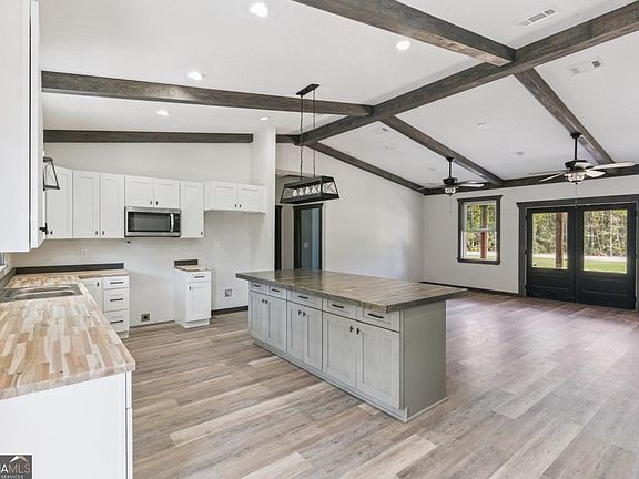 Custom New Construction on 1.64 Acres - No HOA! Currently under construction, estimated completion is October 2025. This thoughtfully designed home in Nahunta, GA, offers the comfort and efficiency of new construction with custom touches that set it apart from standard spec builds. Set on 1.64 unrestricted acres with no HOA, the property provides space, flexibility, and privacy-all within a short drive to Brunswick and the Georgia coast. Step inside to an inviting open-concept layout with vaulted ceilings accented by rustic wood beams. The central kitchen is a true showpiece, featuring a massive island, custom wood countertops, white shaker cabinetry, and modern fixtures. Designed for both everyday living and entertaining, the space flows seamlessly into the dining and living areas. A spacious laundry/mudroom includes a deep utility sink, built-in storage, and direct access to the garage for added convenience. The primary suite offers a private retreat with a walk-in closet and en-suite bath complete with a tiled shower. Two additional bedrooms and a full guest bath are located on the opposite side of the home, ensuring privacy for family or guests. Outside, the covered front porch makes a statement with a stained tongue-and-groove ceiling, timber accents, and room for rocking chairs. A covered back porch provides another spot to relax and take in the quiet surroundings. The attached 24' x 30' garage is heated and cooled, creating options for parking, storage, or even a future hobby space or workshop (not included in the heated square footage). With quality finishes, custom details, and room to grow, this new construction home offers a rare opportunity to enjoy a rural lifestyle without giving up access to key amenities. Schedule your showing today!