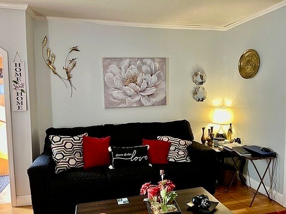 What a nice surprise this back yard has- a 3 car garage plus additional storage w/electric! Planes, trains and especially automobiles can be stored here- or rent a stall out. Plenty of parking to as well as a fenced yard and a back yard patio area .The home itself is adorable with updated siding and windows and a cozy floor plan. Eat in kitchen with access to a nice porch , s.s. oven and refrigerator will stay. Living room is good sized . Lots of hardwood flooring.. The first floor bedroom ( no closet) can be a dining room also. Upstairs a full remodeled bathroom and the main bedroom. The main bedroom has a large walk in cedar closet too and a room that could be an office or nursery as well as another storage closet. The basement is full, clean and dry . This location has easy access to public transportation, shopping, schools- you name it, its easy to get to. Economical and fairly priced. Don't forget the garages!