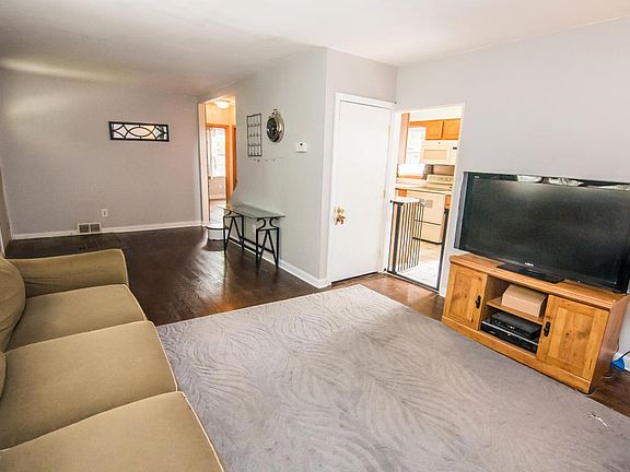 Beautiful expanded cape ready for you to unpack your bags and just start living! As you walk up your hardscaped walkway to a cute porch at the front of the house you'll notice plenty of street parking and driveway parking as well along with a beautifully mainted front yard. Walking in the front door you will notice the tiled entryway, recently refinished hardwood floors sprawl out into a copious living room with bay window ideal for relaxing after a hard day of work. Spacious kitchen offers an ample dining area with cute corner hutch, oak cabinets with built-in microwave, dishwasher, refrigerator, maintenance-free serenity with ideal counter space as well. The kitchen leads out to a sizable deck with a beautifully landscaped backyard complete with storage shed and garden areas.