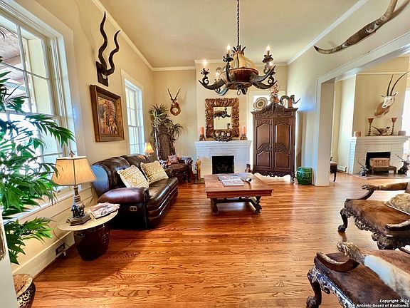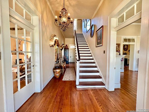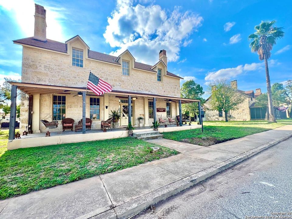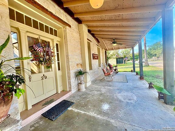 Located within the 2700 ac gated resort community of Fort Clark Springs, a decommissioned US Calvary and army base then a private guest ranch owned by Brown and Root until it became a residential community. Fort Clark historical district is listed as a National Historical Landmark and the home of graced with a Texas Historical Comm. marker. This stately 1874 historical has been artfully & mindfully refurbished inside and out. Named in honor of General Jonathan Wainwright, post commander 1938-1940 who gained fame in World War ll for his heroic defense of the Philippines against the Japanese for which he received the Medal of Honor. It was also John Wayne's residence when he was in Brackettville filming The Alamo in 1959. The imposing main house structure at 5,332 sq ft, has hand cut original stonework which has been painstakingly repointed inside and out, it boasts 5 bedrooms(6 possible) and 3 full baths, a spacious foyer with breathtaking grand staircase, 4 working fireplaces, a parlor/library, living room and a formal dining room all with 12 ft ceilings, gorgeous original hard wood floors, and antique fixtures. Reminiscent of a grander era, the house also boasts a butlers pantry with floor to ceiling cabinetry, cast iron sink, and butcher block counter tops, bead board ceilings as well as a gourmet kitchen with state of the art appliances, including a commercial grade gas range and ovens and custom cabinetry. The original maids quarters upstairs has been repurposed into a luxury closet which doubles as a laundry room. At the back of the home is the original limestone "barracks" structure which now houses a workshop, several storage rooms and another outdoor full bath. There is also a delightful "chauffeurs cottage" attached to the 2 car garage with a full bath which could make a lovely home office or guest suite. The Fort has miles of wooded nature trails along Las Moras creek perfect for hiking, biking and birding and then there's the famous Las Moras Spring fed pool, the 3rd largest spring fed swimming pool in Texas and the 9th largest natural spring in Texas. There is also a fitness center, art club, gun range, fly-in airport, 18 hole golf course and much more. This meticulously maintained, unique offering is a must see and an important component to the story of Texas. The Wainwright House is waiting for its next chapter to bring joy and luxurious living to a new keeper of history and would make a story book memory family home, vacation getaway or even a luxury bed and breakfast.