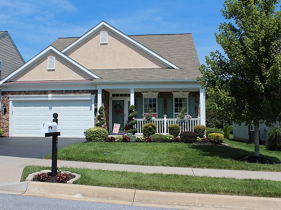 Enjoy this 55+ community home. This designer decorated home features 3 bedrooms 3 baths with numerous upgrades. The 1st floor master bedroom has a beautiful tray ceiling with recessed lighting package the bath features two vanities, large soaking tub, tiled floors/shower. Eat-In-Kitchen all appliances are included also has double oven. Community has a pool, club house, exercise room for your enjoyment. The rear of home backs to woods for more privacy and also features a paver patio. Two car garage and additional parking. Second floor features a loft area, guest room, full bath. In addition. a great storage room was added for extra storage needs. HOA includes trash, lawn care (cut,trim,mulch), use of amenities.