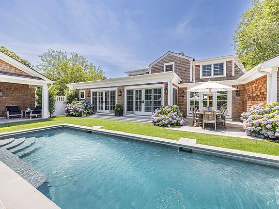 Available for any 2 weeks - 7/6/26 - 9/3/26 @ $39,500. Located in the highly sought-after Redwood neighborhood sits this stunning brand new renovation of a classic village gem that offers everything you need for a perfect summer getaway. This lovely home is beautifully furnished and complete with high-end fixtures and finishes. The sun-filled chef's kitchen is outfitted with a center island and top of the line appliances from Viking & Bosch. Large glass doors create a perfect indoor-outdoor flow from every space on the main floor, leading to the backyard complete with a heated saltwater gunite pool with automatic retractable pool cover, and multiple bluestone patio living spaces. The brand new pool house is equipped with a wet bar and large TV, perfect for al fresco entertaining. The fabulous main level primary suite features a luxurious spa-like bathroom and french doors leading to the backyard. For guests you'll have a queen bedroom on the main level, another queen bedroom upstairs, and a fourth upstairs bedroom that can accommodate either a crib or a full bed. Price for a 2 week term is inclusive of utilities/service fees. Just one mile to village shops, restaurants, and the jitney stop, this Sag Harbor oasis offers the perfect summer in the Hamptons.
