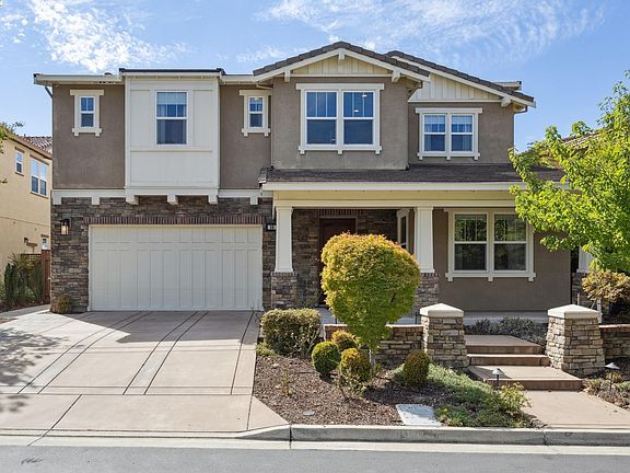 Nestled along the 4th fairway of the prestigious Stonebrae Country Club, this immaculate 5BD/4.5BA residence spans 4,657 SF and offers sweeping views from the San Mateo Bridge to the SF Bay & Oakland skyline. Over $400K in luxury upgrades! The expansive floor plan features a light-filled great room, formal entry, elegant wainscoting, coffered ceilings, and custom built-ins. Chef’s kitchen boasts quartz counters, shaker cabinetry, stainless steel appliances, a built-in fridge, and an oversized island with/ bar seating. Enjoy seamless indoor-outdoor living via the California room, overlooking professionally landscaped grounds with artificial turf, drought-tolerant plants, and a hot tub. Primary suite offers a spa-like bath with soaking tub, walk-in shower, dual vanities & huge walk-in closet. Secondary bedrooms include two en-suites, one Jack-and-Jill, and multiple walk-ins. Upstairs game room opens to a second California room capturing panoramic bay views. Additional highlights: designer hardwood flooring, custom lighting, 3-car garage, walk-in pantry, and ample storage. A rare opportunity to own a true showpiece in a gated golf course community!