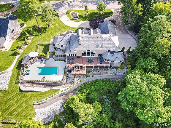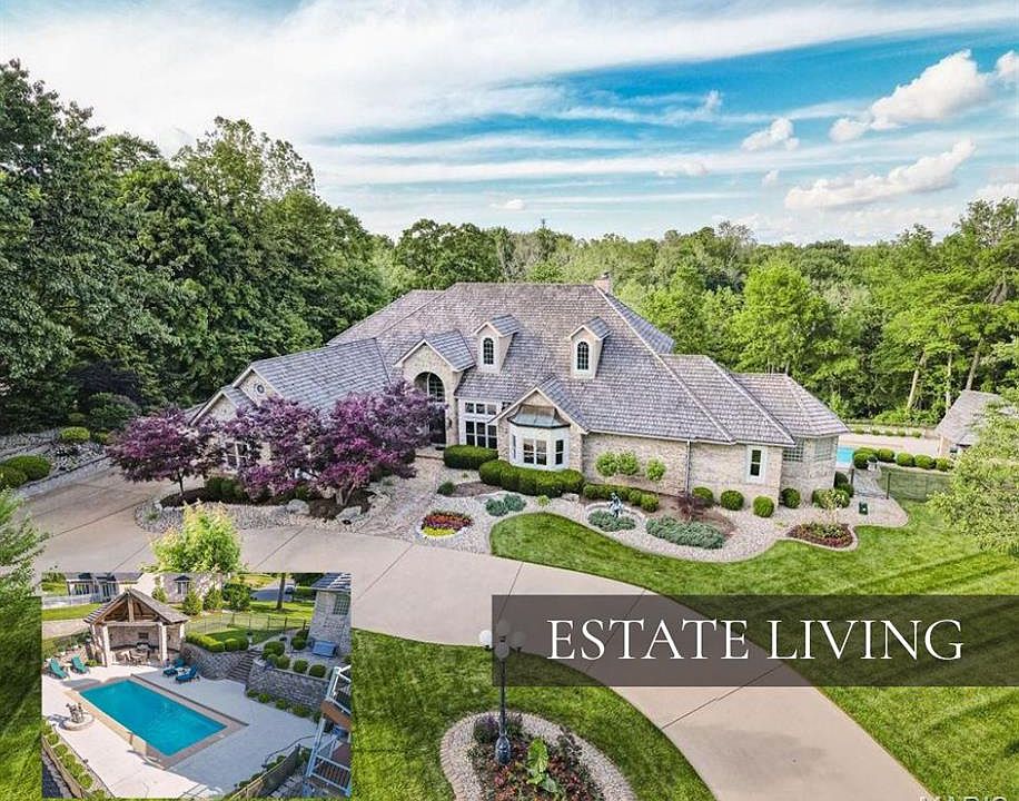 Nestled on a 9.31-acre estate in Edwardsville, this luxury property exudes sophistication. The stone & brick facade, circle drive, extensive landscape & three-car garage create a grand entrance. Boasting over 6400 sq ft, the interior features a stunning entry & staircase, wood flooring, a main-level master suite, hearth room, great room & an office. The upper level is stunning with 2 en-suite bedrooms and a remarkable sitting area. The outdoor space is an entertainer's paradise, with a heated inground pool, outdoor kitchen, multiple decks/patios and wooded privacy. Equipped with a whole-house generator, this residence ensures uninterrupted living. An improvement list is available upon request, showcasing the property's many enhancements by current owner. This Edwardsville gem seamlessly combines elegance, functionality, & comfort; offering a rare opportunity for refined living in a tranquil setting. Near interstate access, dining, & shopping. 3 parcels total the 9.31 acres. Roof 2020. Additional Rooms: Wine Cellar