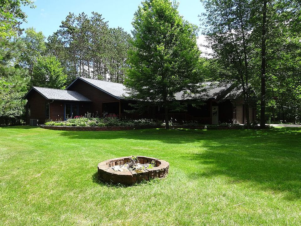 Beautiful custom-made home in prime location just across the street from Shell Lake. Get the bonus of city water/sewer and being minutes from town, yet the privacy of a wooded 1.78 acre beautifully landscaped lot. This spacious 4 bedroom, 3-1/2 bath home has an extra-large kitchen & pantry, sunroom, living room with gas fireplace, large main floor laundry, and an 8-person hot tub in the lower-level family room. The primary bedroom features a patio door & deck, walk-in closet, full size walk-in shower and separate vanity room. Pine vaulted ceilings in entryway, kitchen, living room & sunroom along with ceiling fans throughout add to the uniqueness and beauty of this home. Enjoy cookouts on the covered deck or the open deck off the sunroom. A large attached heated garage with workshop, 28 x 42 detached heated garage with 10-foot door, and two additional sheds with roll-up doors give you all the storage you need for your toys to use on the lake and recreational trails. Many updates in the last three years including blacktop on driveway and a new roof on house, detached garage and shed. You do not want to miss your opportunity to tour this amazing home today!!