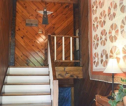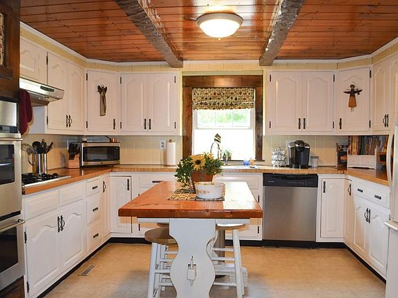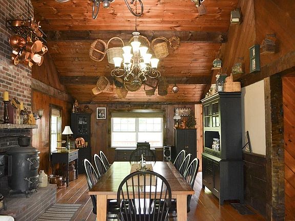 The best of both worlds! Set on a pretty lot, the exterior of this home has recently been improved with new siding, roof, windows, doors and gutters. Step through the door, and you might think you are in a country cabin! Amazing front to back family room, currently used as dining room, reminiscent of Post and Beam with soaring wood ceiling, and an impressive floor to ceiling fireplace with coal stove. Three bedrooms plus a den, open kitchen, first floor laundry, and 2 full baths! Most rooms have wood floors, ceilings or walls! A great example of Americana style. Lower level offers an opportunity to add even more living space, and has a fireplace with a coal stove. Hungry? Take a step outside and pick some delicious blueberries! New septic being installed. Call today for a personal tour!