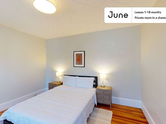 This Queen room in Somerville is available on a 12 month lease or a flexible short term (31 to 364 days) lease. You pick your custom start and end date. Monthly rent rate is determined by furnishing preference, move-in date and move-out date. Speak to a June representative for recommendations on the best stay duration for the lowest rate.