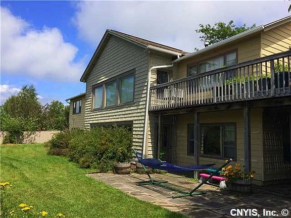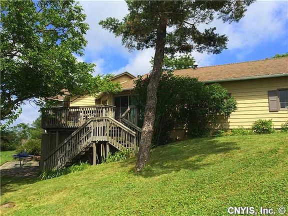 Sound, solid sought after Skeele Ranch home with million $ views on Cross Rd. pinnacle of Skeele building in town of DeWitt. Walking distance to SU and hospitals, yet J-D schools. Last house on left of cul-de-sac with west views of Lafayette to Oswego. Quality built, mostly original. New taxes will be much less; Assessment just lowered from $371,800 to $275,000. Huge master suite on main floor, plus library/bedroom. Lower walk out level has 3 bedrooms, 2 full baths and huge family room with fireplace. Two stairways. Kitchen open to morning room, deck -and endless views.