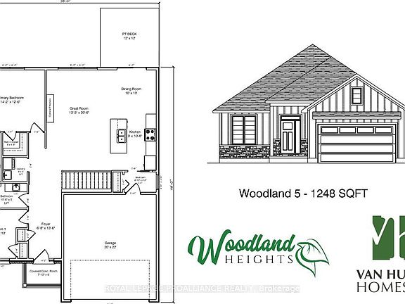 This beautifully crafted custom home by Van Huizen Homes, located in the charming Woodland Heights community, combines contemporary style with practical living. The main floor offers 2 comfortable bedrooms, including a primary suite with a private ensuite featuring a double vanity and a spacious walk-in closet. A second bathroom on the main floor adds extra convenience. The open-concept living area is perfect for both relaxing and entertaining, with a striking tray ceiling in the living room that adds a touch of elegance. The kitchen is equipped with a generous pantry, providing plenty of storage space for all your culinary needs. Convenience is key with a mud and laundry room that connects directly to the attached two-car garage, offering easy access to the home. Relax and enjoy the outdoors with a large covered front porch and a rear covered deck measuring 12' x 10', ideal for dining or lounging. If you're looking for more space, the basement offers the option to be finished at an additional cost, adding two extra bedrooms, a third bathroom, and a recreation room - perfect for expanding your living space to suit your needs.