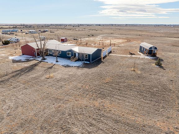 11.43 acre homesite near Moriarty, Torrance County, New Mexico is now for sale. This home has been stripped and completely remodeled beginning with new electric that includes 2-200 amp services, new PEX plumbing and new metal roofs on all property buildings. There are two sheds - a Graceland 12x32 and a 10x10 second shed. Inside the home you will find new flooring, new windows and everything in the kitchen is new including cabinets with soft close doors, pull outs, and beautiful granite countertops. All new appliances and as a bonus there is a wine cooler. The bathrooms are completely new with the primary shower being wheelchair accessible. The heating and cooling unit is a new 44,000 BTU combo system. The 2-car garage is not just a garage, it is 32'x43', and has a large workshop and