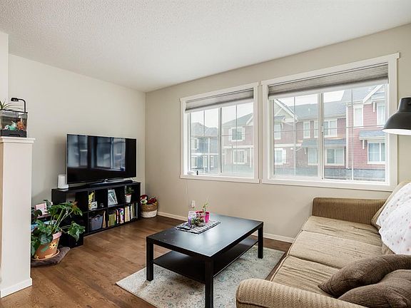 Welcome to this bright and beautiful townhome located in the highly sought-after NW community of Kincora! Warm hardwood floors and light cream cabinetry create an inviting atmosphere that instantly feels like home. The main level offers an open-concept layout that's perfect for everyday living and entertaining. A raised bar counter provides the ideal separation between the kitchen and dining area keeping the cook connected while keeping the clutter out of sight. The kitchen is equipped with stone countertops, ample prep space, a generous pantry, and double French doors that open to your private deck, perfect for BBQs and relaxing outdoors. The spacious living and dining areas are well-proportioned for gatherings, and a convenient half bath completes the main floor. Upstairs, you'll find two large primary bedrooms, each with its own ensuite bath and plenty of closet space. A convenient laundry area is also located on this level. Enjoy sunny afternoons on the west-facing deck, and take advantage of the double tandem garage plus an additional driveway space parking for up to three vehicles in total. Perfectly positioned within walking distance to scenic trails, community parks, transit, restaurants, and fantastic shopping options including Creekside Shopping Centre and Sage Hill Crossing. This home truly has it all- book your showing today!