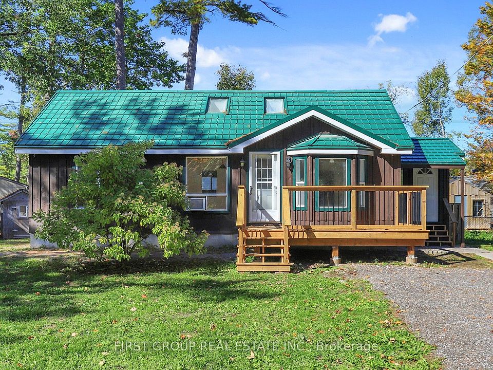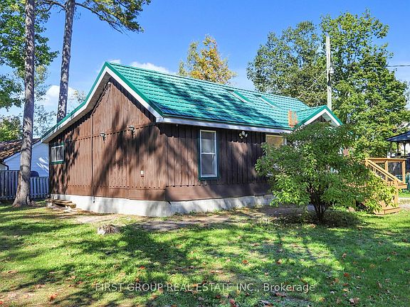 Charming Open-Concept Bungalow on a Double Lot Steps from The Beach! Welcome to this beautifully updated open-concept bungalow nestled on a spacious double lot. Recent upgrades include new kitchen and bedroom flooring and fresh paint for a bright, modern feel. Classic pine floors in Living/Dining Area, a cozy propane fireplace, and an efficient propane furnace create a warm and inviting atmosphere. Enjoy the convenience of main-floor laundry, ample storage with multiple sheds, and a fully winterized bunkie prefect for guests, a studio, or a home office. With durable steel roof and an unbeatable location just a short stroll from a gorgeous wade-in beach, this home offers the perfect blend of cottage charm and year-round comfort. Hot water tank owned and was replaced in 2022.