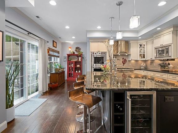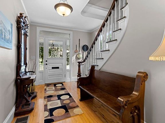 Set atop desirable Fairview Hill, the Stephen J. Hoxie house, c. 1860, boasts historic Victorian detail with modern convenience, surrounded by a lush landscaped setting of mature trees, stone walls and gardens. Upon entering the home, one discovers a fully appointed chef's dream kitchen with 8' center island, sun-drenched living room with unexpected two-story open balcony above, formal dining room, den. Overlooking the living room below, the upper balcony provides a convenient flow to three bedrooms. The primary bedroom is thoughtfully designed with luxurious en suite bath including privacy water closet, spa tub, and double multi-function shower. A rear staircase accesses the third level which includes two additional bedrooms, kitchen, bath and rec room. The first level apartment (2 family Zoning), with exterior and interior access, has 9-foot ceilings, arched and transom windows, crown moldings, wood flooring, ADA bath and vaulted bedroom - all within 1000 sf! A stroll is enough to confirm the uniqueness of this unexpected private and tranquil setting of enchanting fieldstone courtyard surrounded by stone walls, gardens, koi pond and firepit. Perfect for the avid gardener or landscape enthusiast, the greenhouse is complete with automatic climate controls. The 14-foot swim spa set on the expansive wrap porch offers both relaxation and exercise. Painstakingly remodeled throughout, this home boasts pride of ownership in every detail. A true gem for the discerning homeowner.