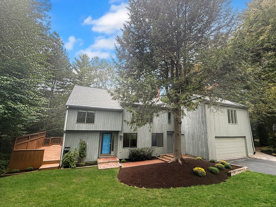 Welcome to 29 Fawnbrook Lane, a beautifully maintained, east-facing 4-bedroom, 3.1-bath Contemporary on a quiet cul-de-sac, just minutes from Simsbury Center yet surrounded by the beauty of nature. With walking trails, streams, and Stratton Forest directly behind the property, you can step out of your backyard and into nature while still enjoying the convenience of town living. Inside, the updated granite kitchen with breakfast bar opens to a formal dining room with sliders leading to a large multi-level deck-perfect for entertaining or enjoying peaceful mornings. The family room offers a gas fireplace and large, bright windows, while hardwood floors and a half bath complete the first level. Upstairs, a spacious loft with high ceilings provides flexible space along with four bedrooms. The primary suite features a private balcony, modern en-suite bath, and walk-in closet. A second fully remodeled bath adds to the home's appeal. The finished lower level expands your lifestyle options with space for a recreation room, media or home theater area, or office, plus a third full bath. Additional benefits include Thermopane windows and a tankless natural gas water heater. Enjoy the perfect blend of comfort, updates, and location-close to shops, dining, Simsbury schools, the Drake Hill Flower Bridge, Flamig Farm, and the popular Farmington Canal Heritage Trail. Stratton Forest Park itself is just moments away! Some photos have been digitally staged. Schedule your viewing today